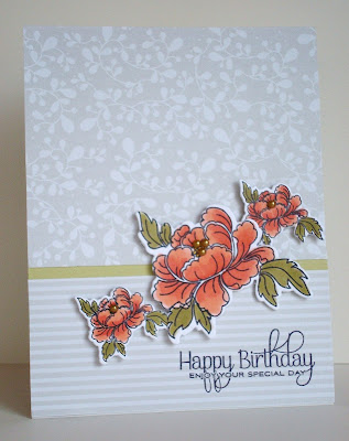 My cheerful roses are made with summer sunrise card, ribbon and papers by Papertrey Ink and the images are coloured with Copic markers.